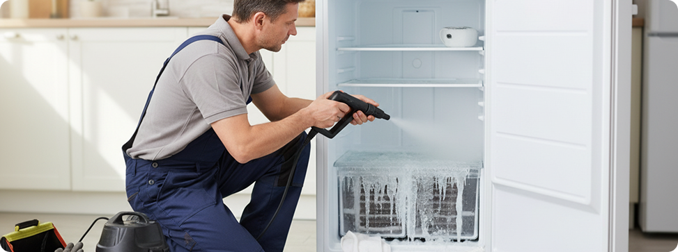 - Разборка без вандализма. Чтобы добраться до испарителя, нужно снять заднюю пластиковую панель в морозилке. Часто она примерзает намертво. Я не держу ее силы (пластик на морозе хрупкий!), а использую промышленный парогенератор или строительный фен на минимальной температуре, чтобы аккуратно подтопить лед в клипах.