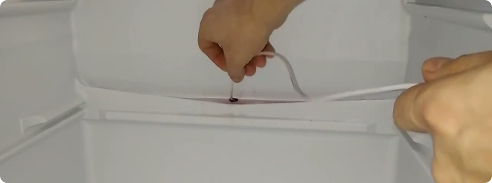 В ряде моделей No Frost (Samsung, LG, Bosch) сливная трубка проходит через теплоизоляцию. Засор может сформироваться не у входа, а в средней части канала — там, где его невозможно прочистить снаружи.