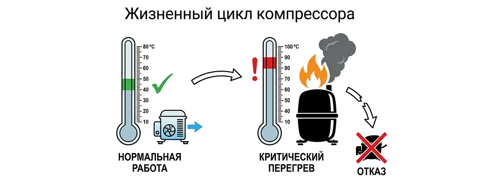 Простыми словами: цикл должен выглядеть как 15–20 минут работы и 30–40 минут отдыха. Если ваш агрегат «молотит» 24/7, его ресурс, рассчитанный заводом на 10–15 лет, сгорает за пару-тройку месяцев. Масло в компрессоре перегревается, клапана деформируются, и в итоге — заклинивание мотора. А замена мотор-компрессора — это 70% стоимости нового холодильника. Как правило сам ремонт холодильников проводится в стационарной мастерской.